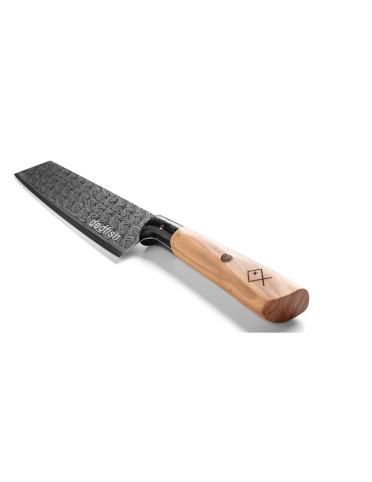 Add to your arsenal of kitchen cutlery this stunning expertly crafted unique Kiritsuke Knife. This multipurpose Japanese knife, traditionally used only by executive chefs is stain-resistant and specially designed so you can prepare your favorite delicious meals with precision and ease. The sleek blade is made from the highest quality German steel, and the comfortable handle made with G10 + Olive wood sourced from Southern Italy.