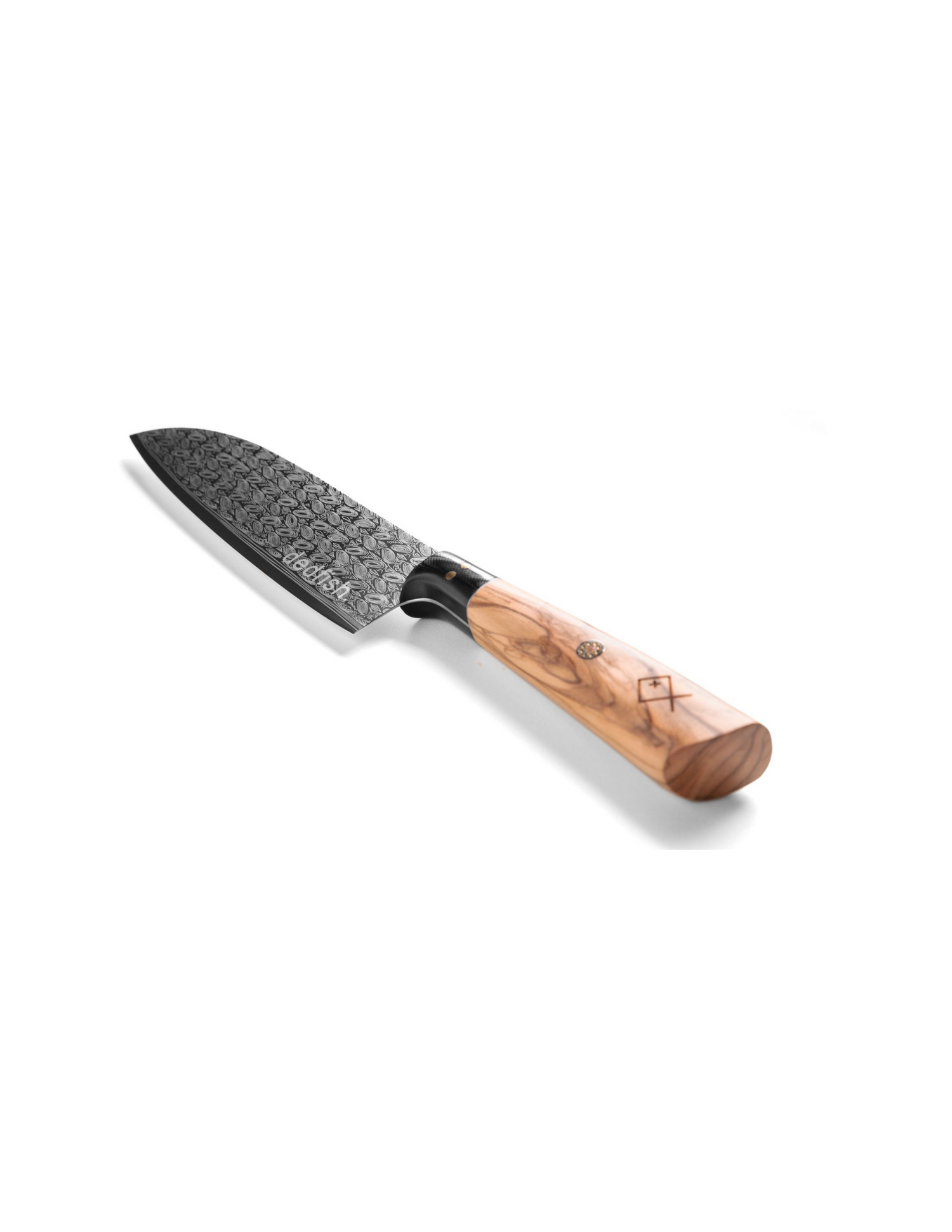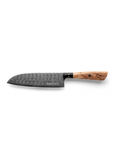 Add to your arsenal of kitchen cutlery this stunning expertly crafted unique Santoku Knife. The Japanese word Santoku translates to “three virtues”, in this case referencing the santoku knife’s three uses: slicing, dicing, and mincing. Being slightly shorter and lighter than the classic chef’s knife makes this knife a favorite for any kitchen tasks. Our Santoku knife is as versatile as they come.