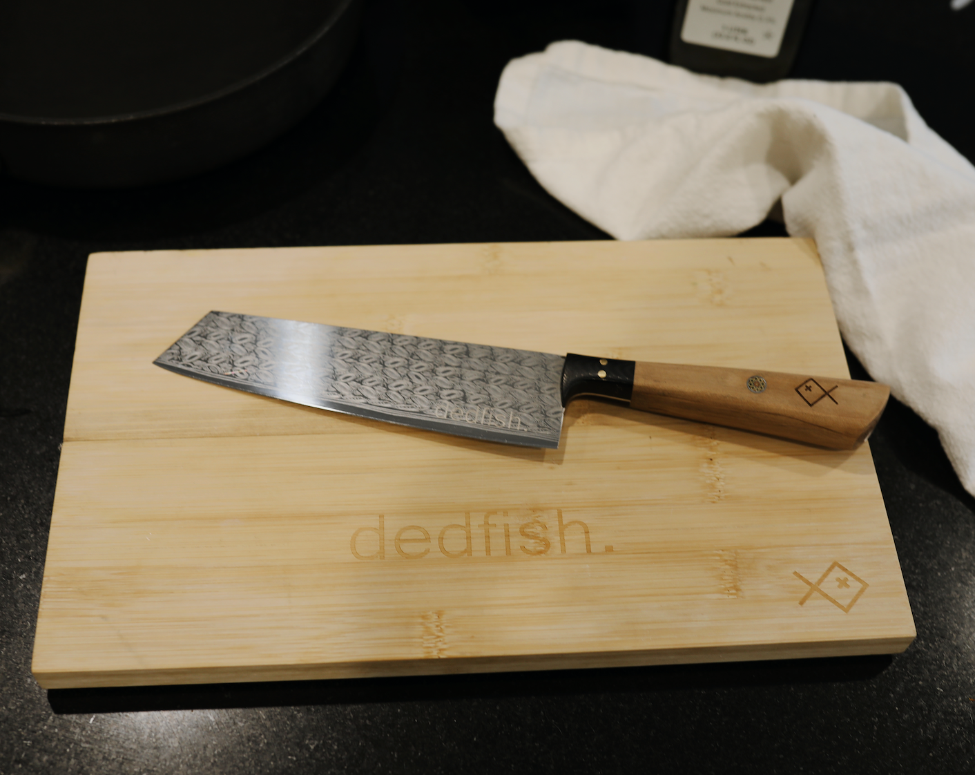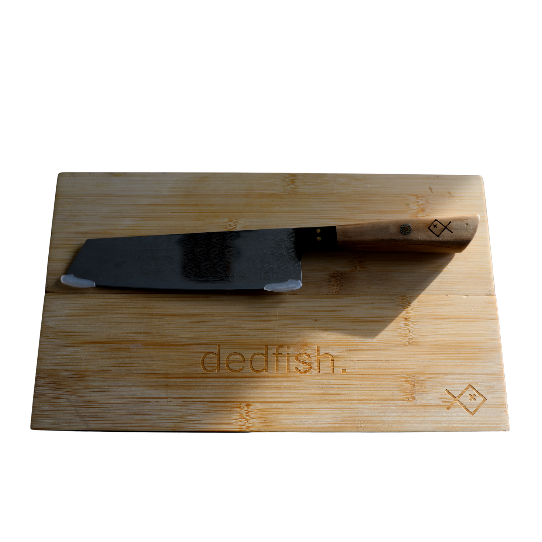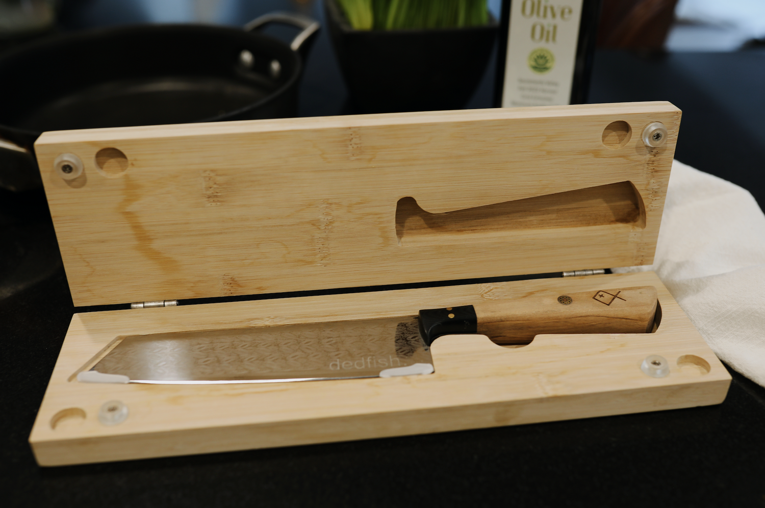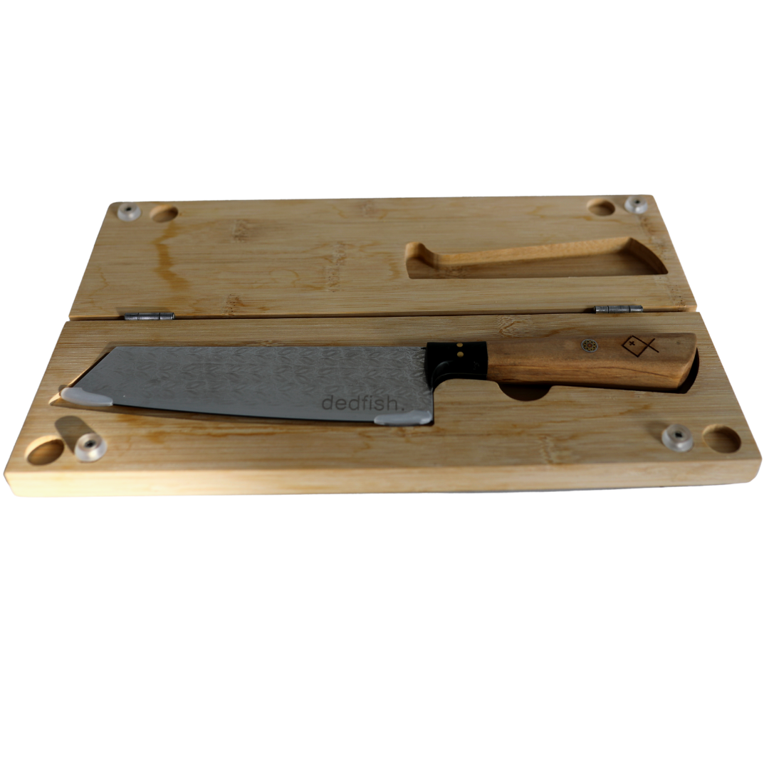 Dedfish Co.’s knife and cutting board/case helps you carry less and prepare meals with ease while saving both precious space and time! The chef-grade quality knives and full-size cutting board allow you to prepare meals without having to worry about carrying excess kitchen equipment with you. And the best part? We’ve kept everything sustainable! From the cutting board and case material to the wooden handles of the knife – everything is ethically sourced.